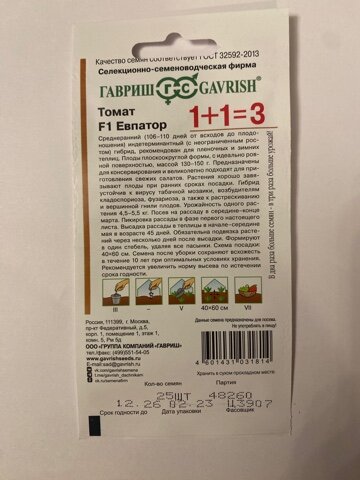 Ниже Вы можете прочитать отзывы на Семена Томат Евпатор F1, высокорослый, среднеспелый, (гавриш) 25шт сер1+1, ознакомится с подробными характеристиками, посмотреть интересные обзоры и фотографии на Семена Томат Евпатор F1, высокорослый, среднеспелый, (гавриш) 25шт сер1+1.