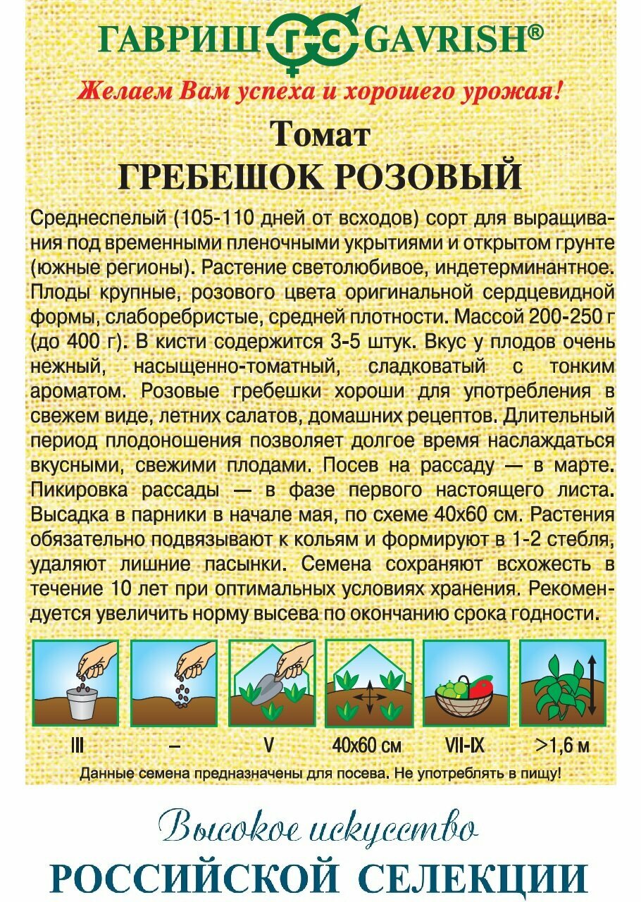 СохранитьГавриш, Томат Гребешок розовый пр 0,05 грамм интересное: