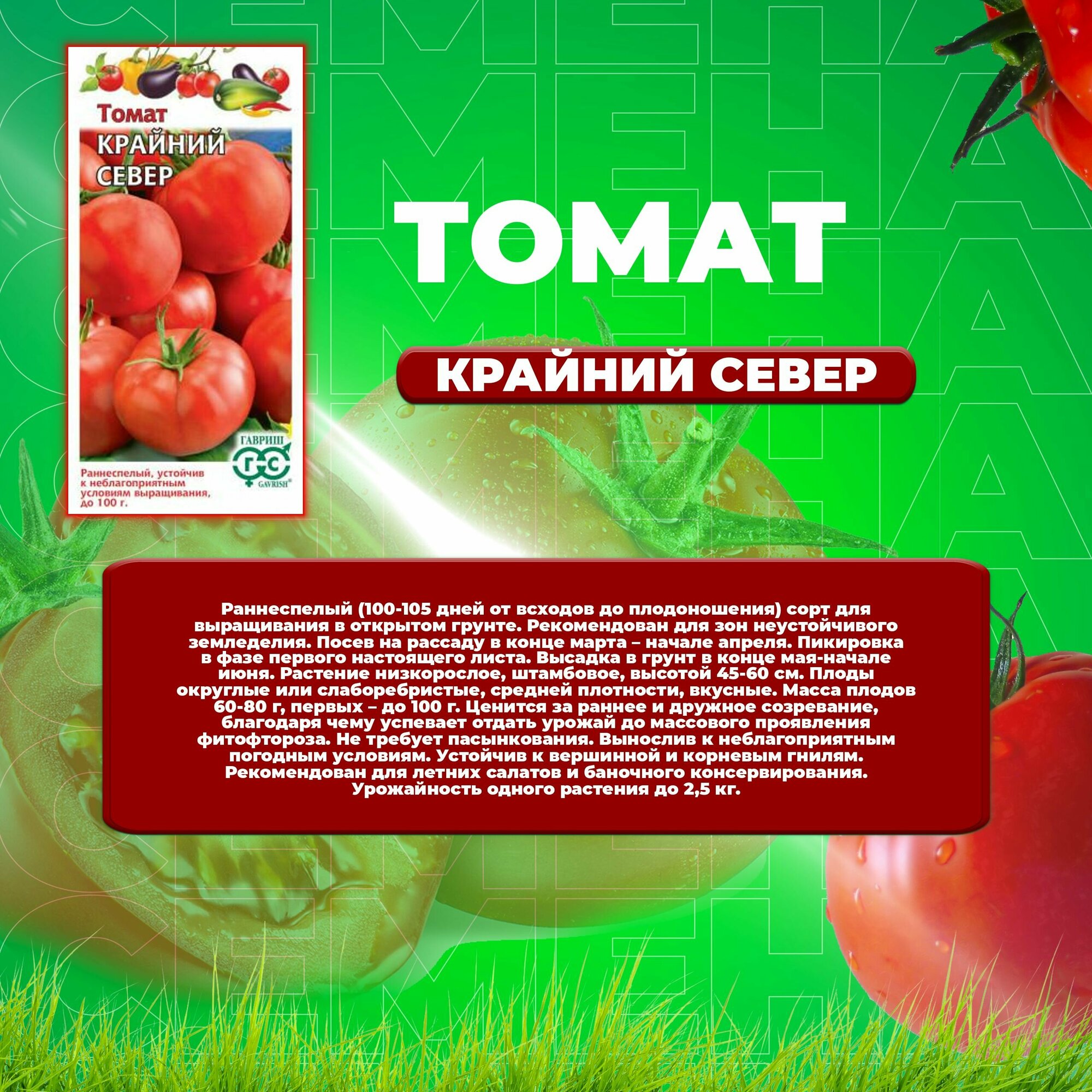 Ниже Вы можете прочитать отзывы на Томат Крайний Север, 0,05г, Гавриш, Овощная коллекция (1 уп), ознакомится с подробными характеристиками, посмотреть интересные обзоры и фотографии на Томат Крайний Север, 0,05г, Гавриш, Овощная коллекция (1 уп).