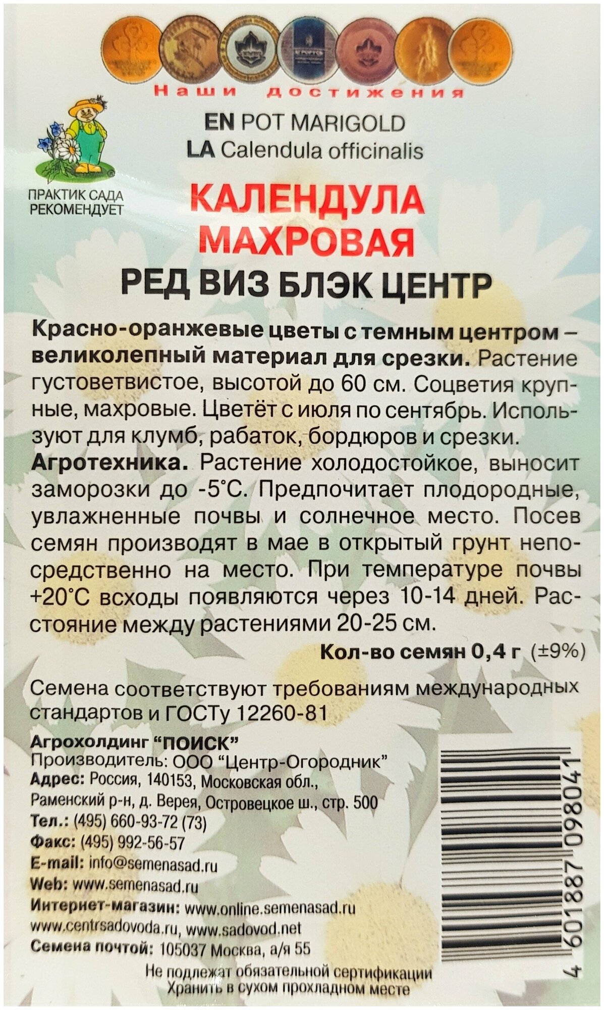 В заказе: 10 пачек семян / Календула Ред виз Блэк центр 0,4г Одн 50см (Поиск)