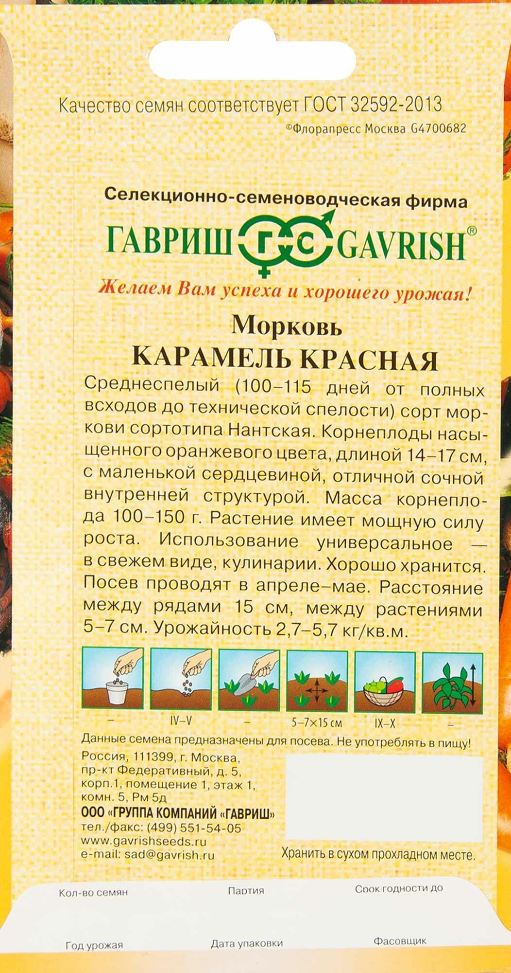 Семена 10 упаковок! Морковь Карамель красная 150 шт Ср (Гавриш) автор