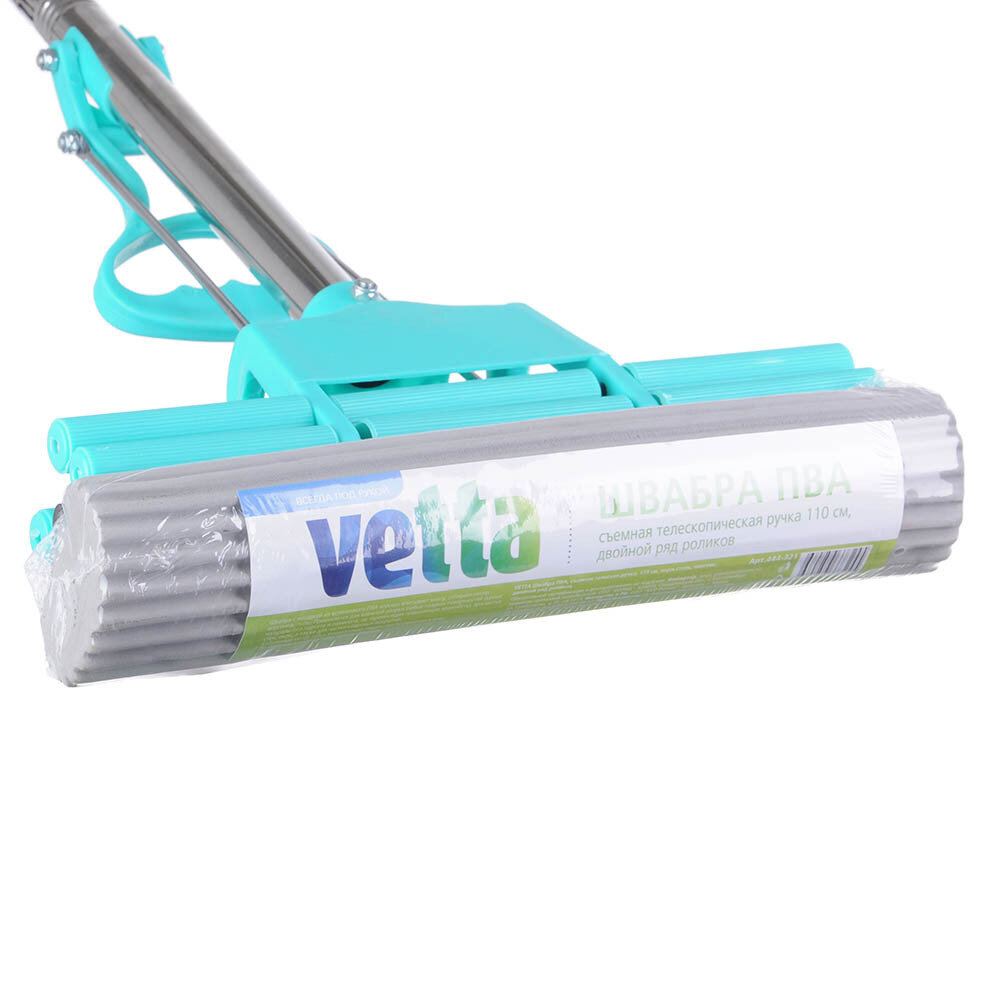 Купить Швабра ПВА VETTA, съемная телескопическая ручка, 100см, нержавеющая сталь, пластик, двойной ряд роликов