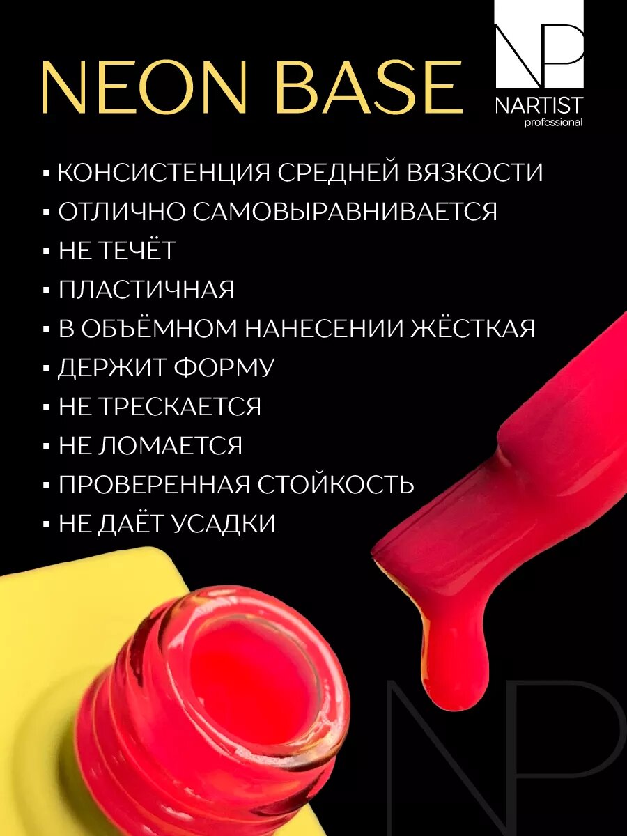 Неоновая цветная красная база для ногтей Nartist