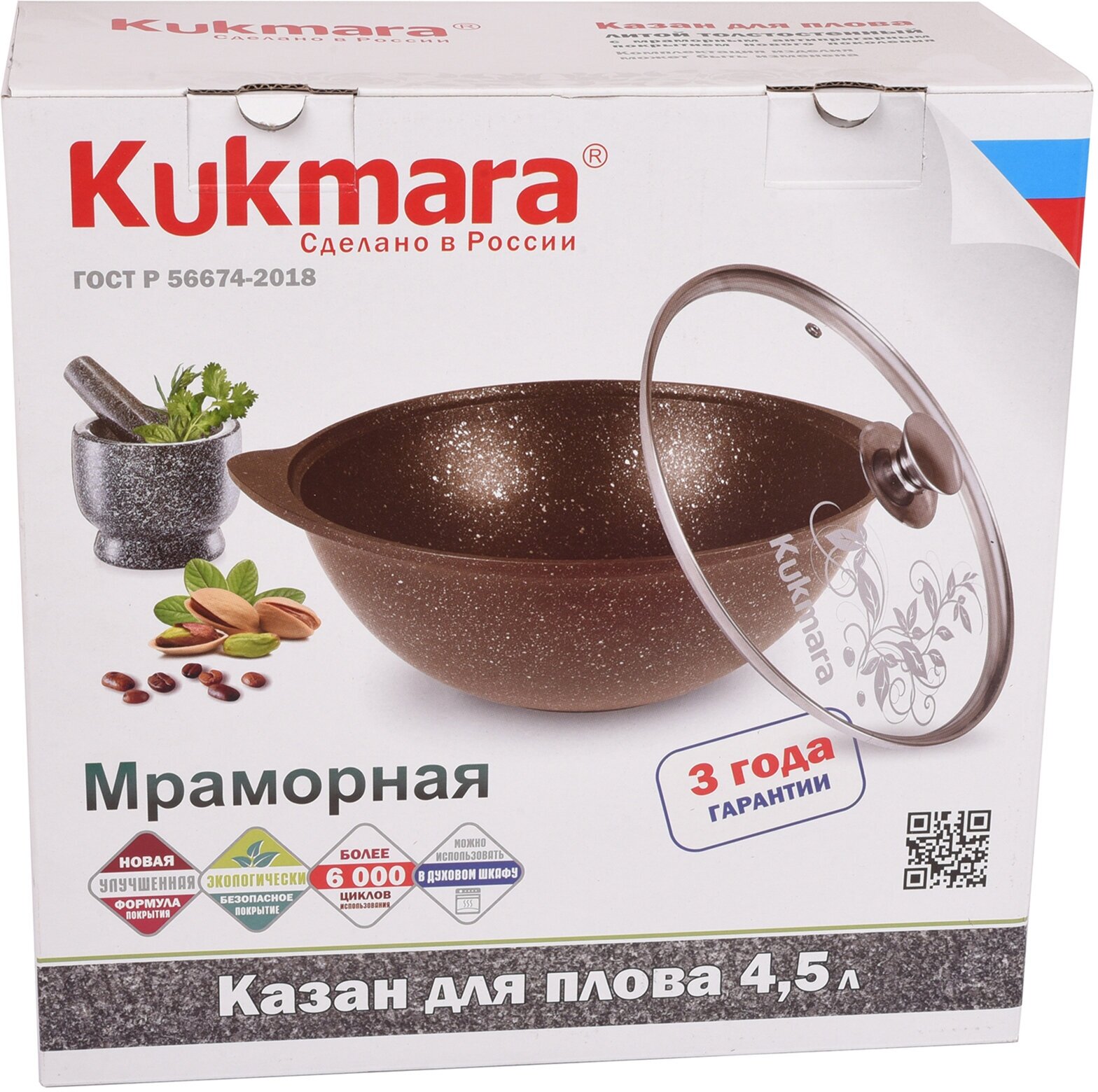 Казан Kukmara с антипригарным покрытием со стеклянной крышкой для плова Kukmara (темный мрамор) кмт37а, 3.5 л