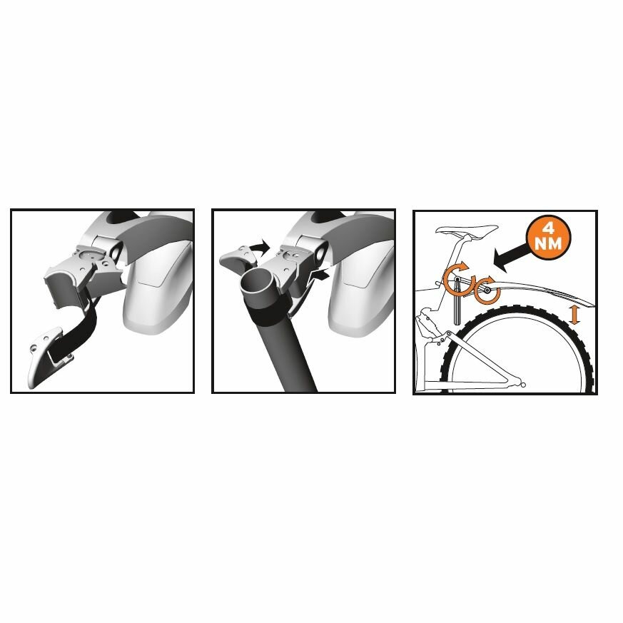 | Плюсы: | Универсальное крыло. Быстро устанавливается с помощью ремня на шток седла. |