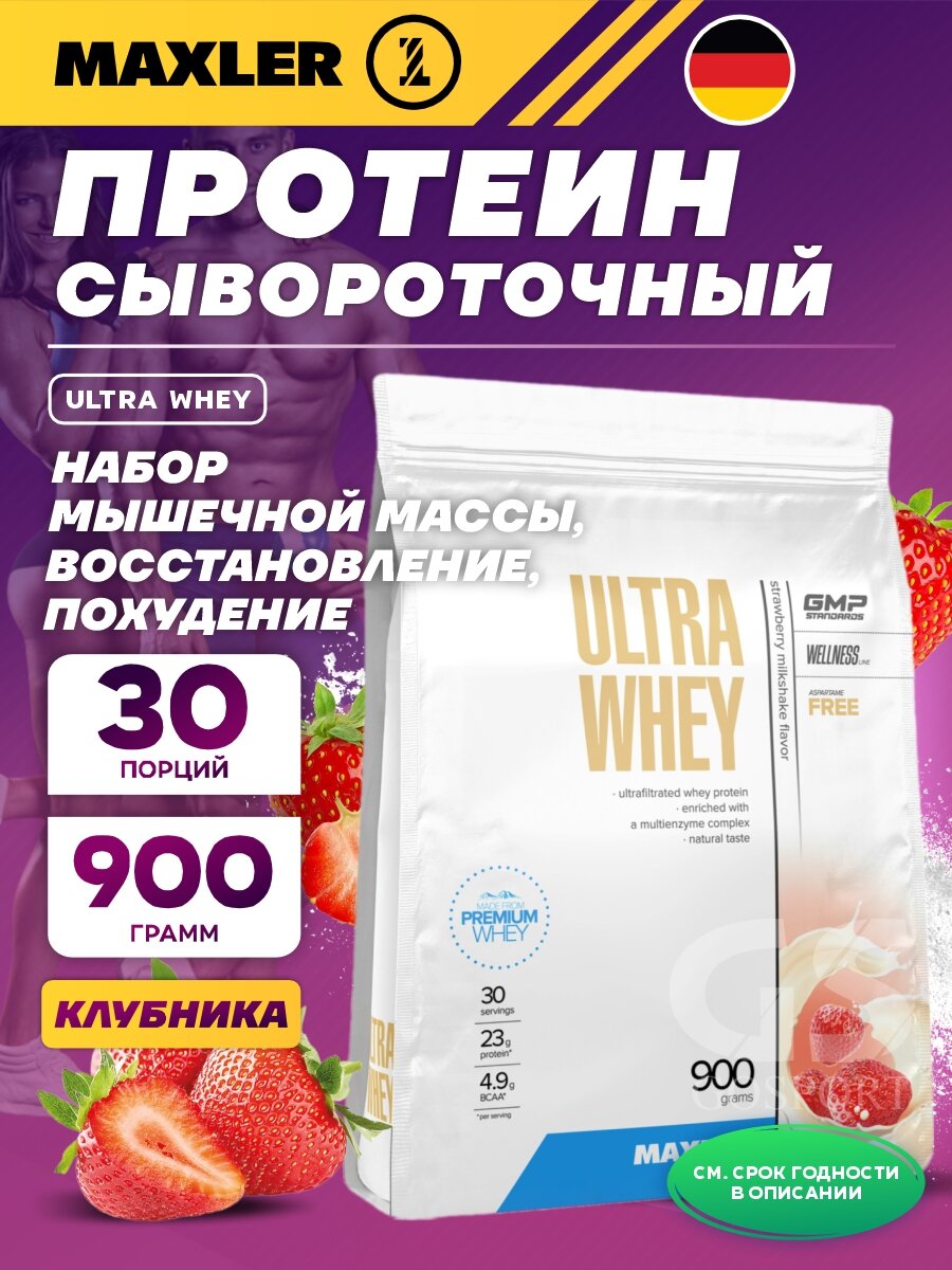 Купить Сывороточный протеиновый концентрат Ultra Whey 900 гр (Maxler) Клубничный молочный коктейль