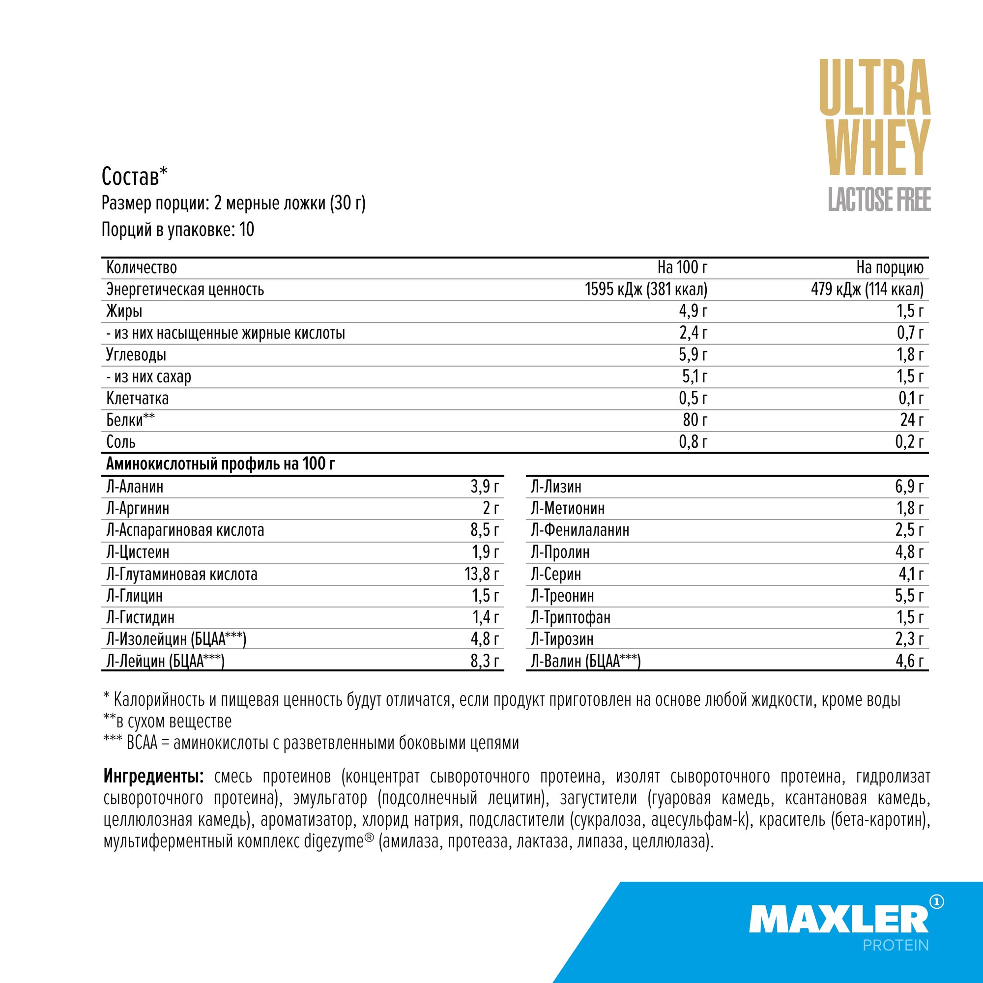 Сывороточный протеин MAXLER Ultra Whey Lactose Free 300 г, Натуральный