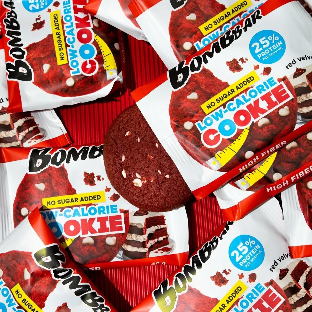 Купить Низкокалорийное протеиновое печенье без сахара BOMBBAR Protein Cookie, Красный бархат, 12 шт по 40 г