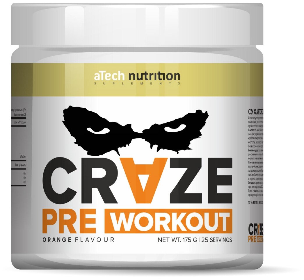 предтренировочный комплекс CRAZE aTech Nutrition, апельсин,175гр интересное: