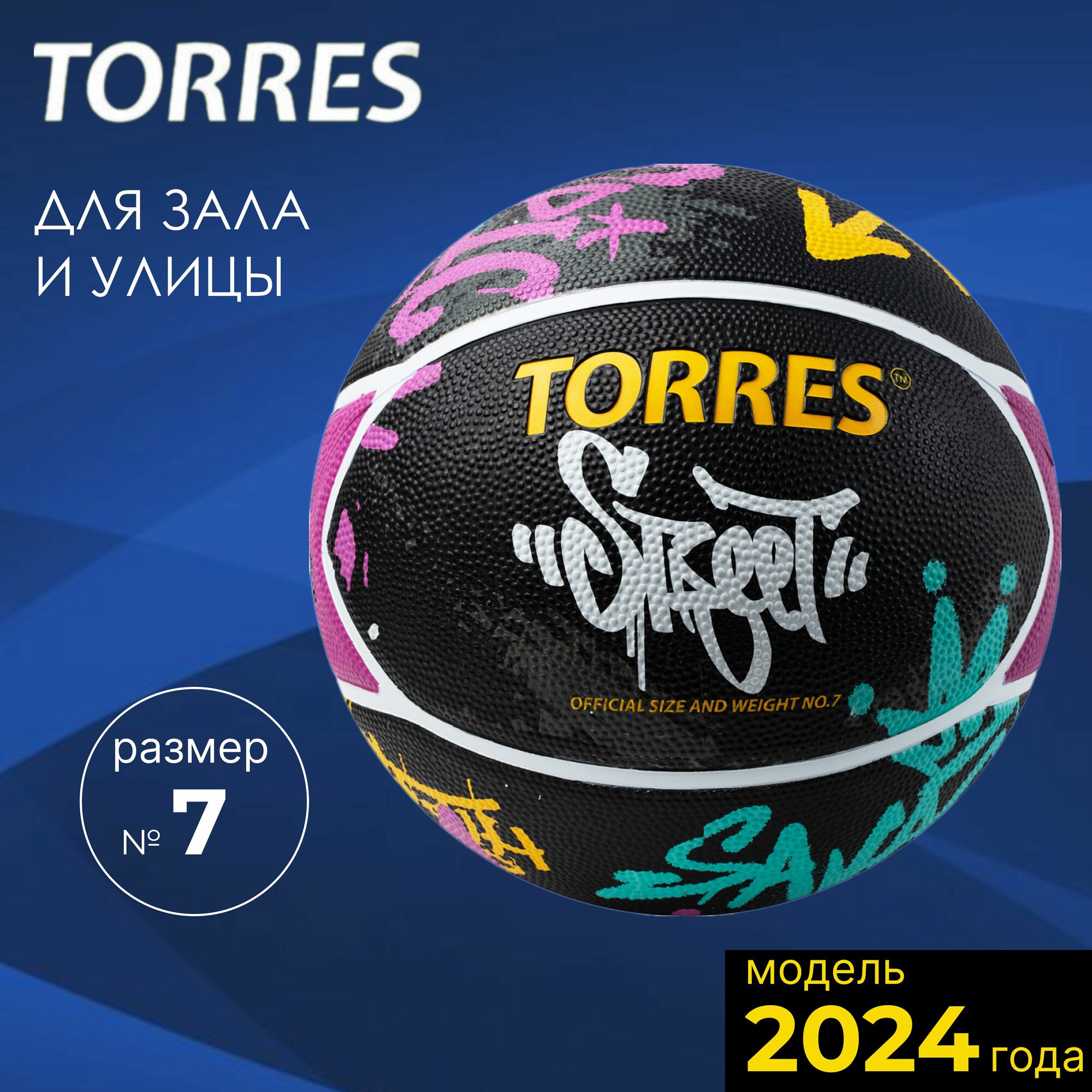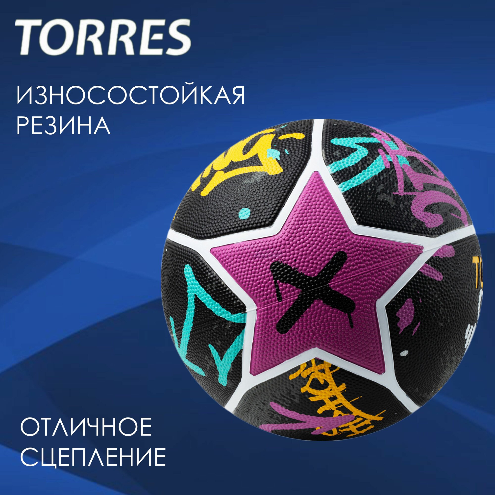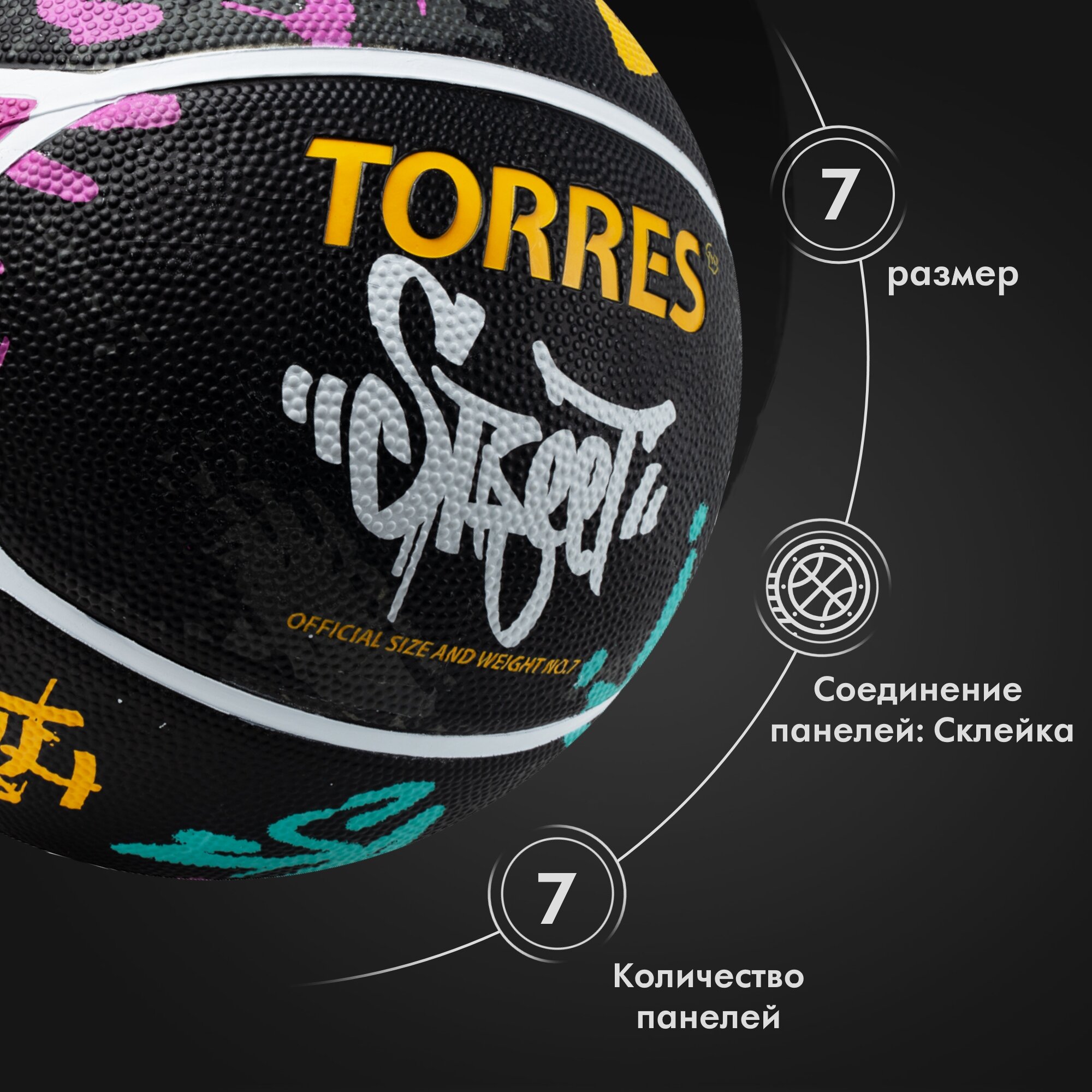 Купить Мяч баскетбольный TORRES Street, B023107, р.7, 7 панел.резина, нейлон.корд, бут. кам., чёрно-мультик