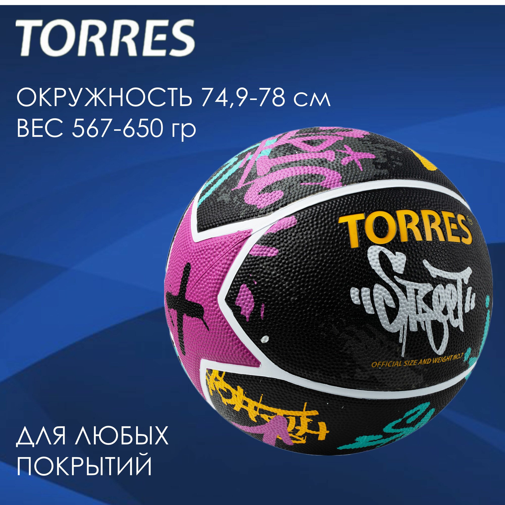 Мяч для уличного баскетбола TORRES Street, износостойкая резина, размер №7