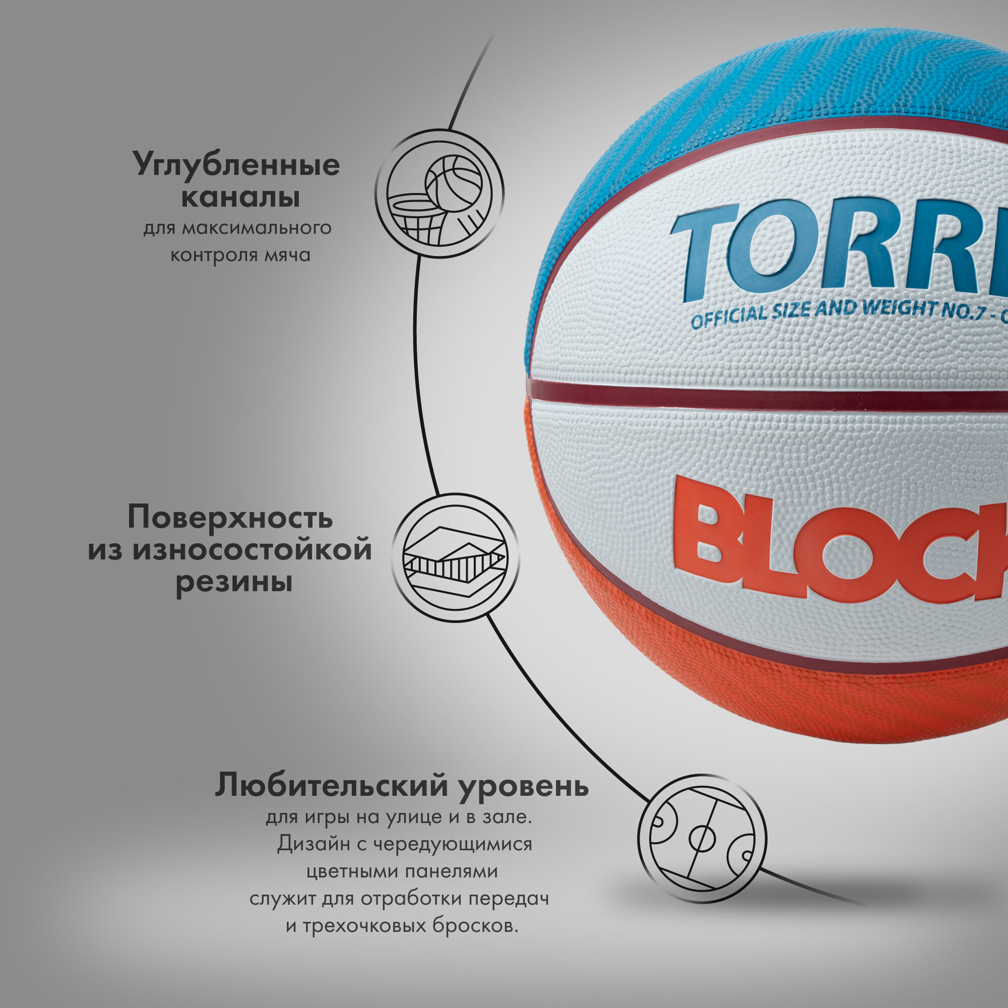 Купить Мяч баскетбольный Torres Block, B023167, р.7, светл-серо-сине-оранжевый