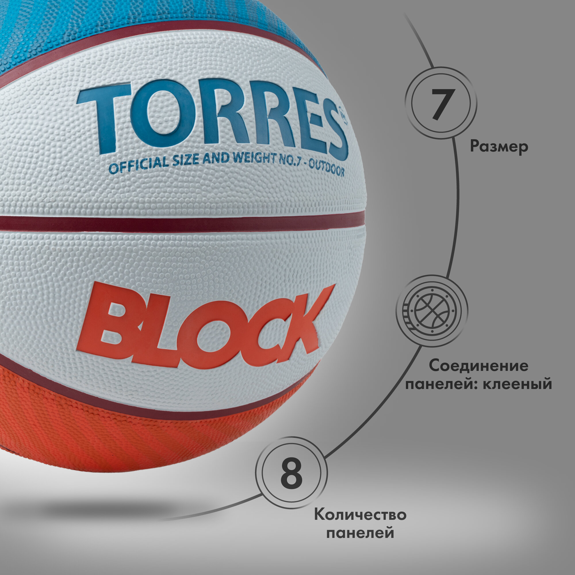 Баскетбольный мяч TORRES Block, B00077, клееный, 8 панелей, р. 7, резина, бутиловая камера