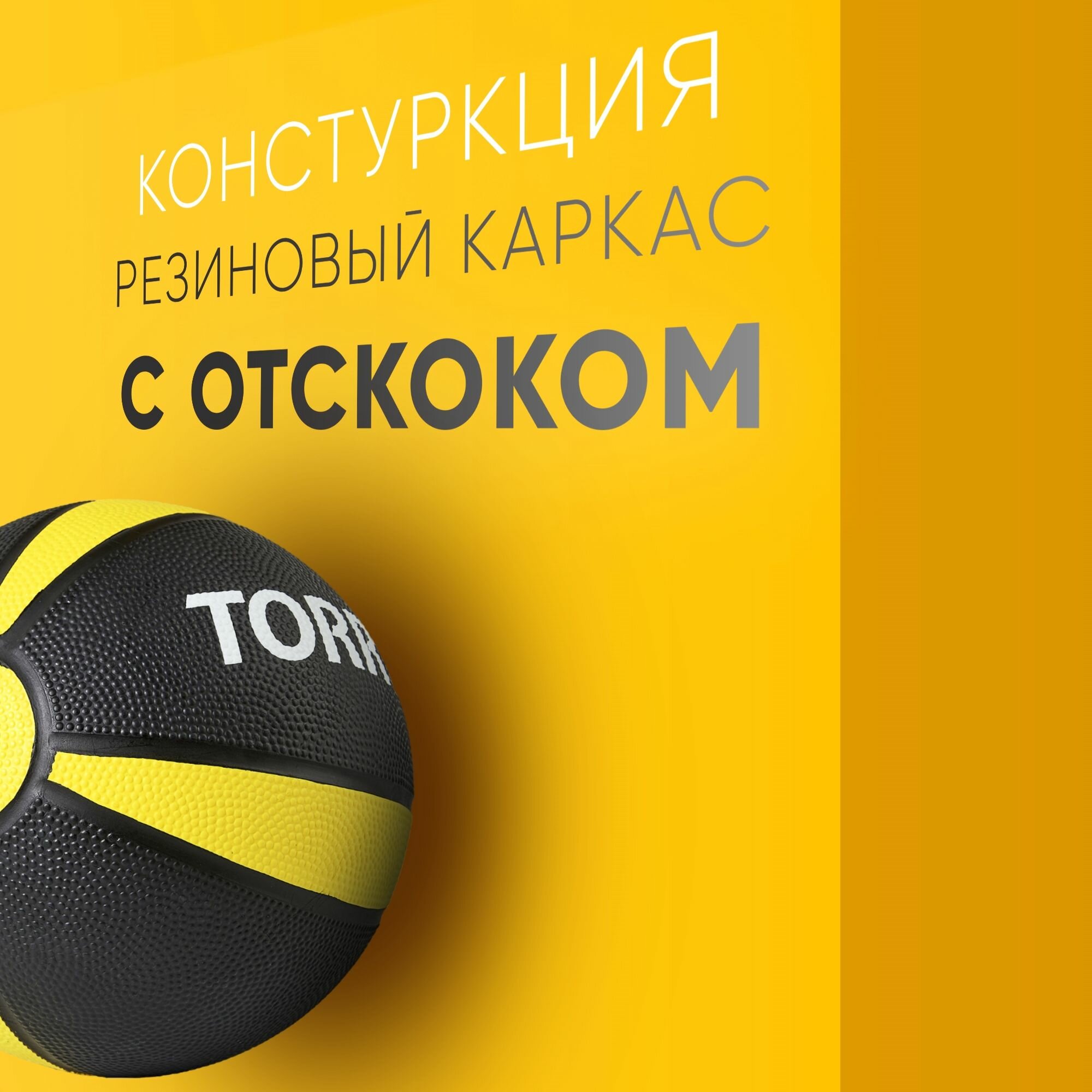 Медбол TORRES 1 кг, AL00221, резина, диаметр 19.5 см, чёрный-желтый-белый