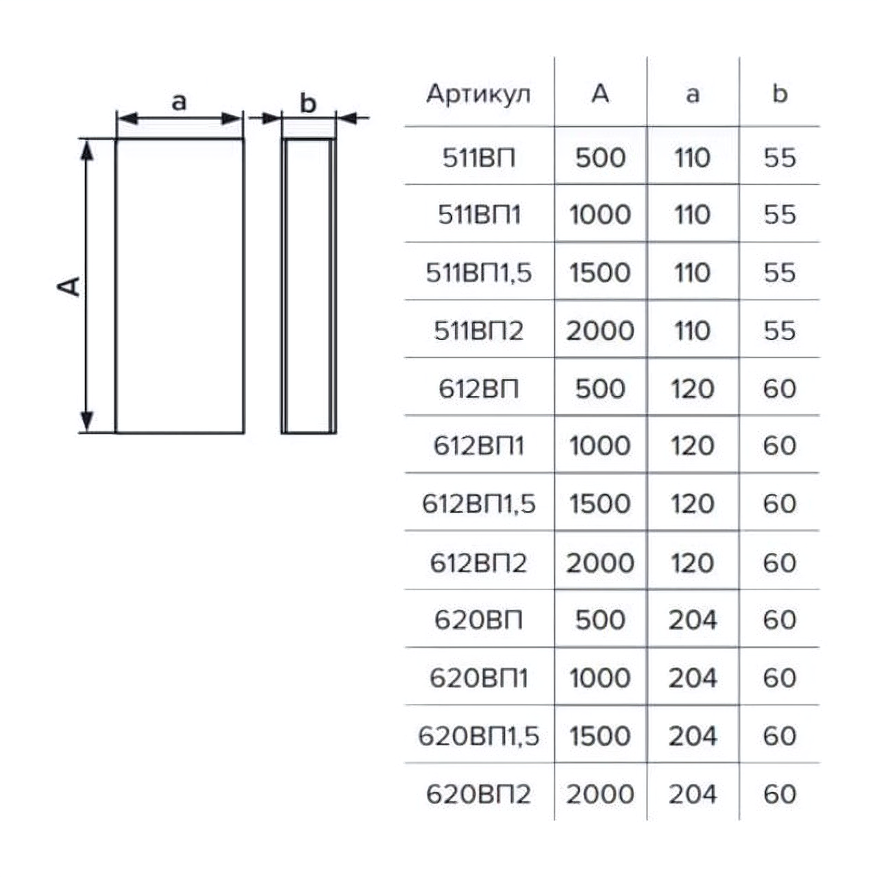 612ВП1, Воздуховод прямоугольный ПВХ 60х120, L=1м