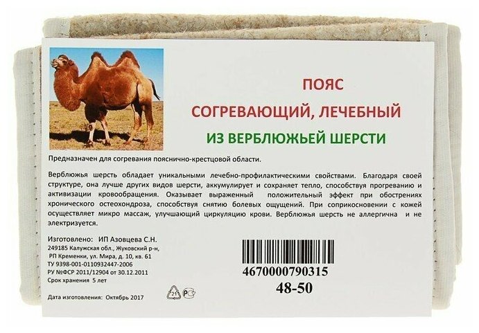 Пояс из верблюжьей шерсти круг 44-46, Azovmed
