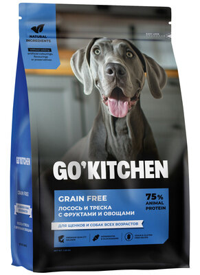 Сухой беззерновой корм для щенков и собак Go! Natural Holistic с лососем и треской 5,44 кг.