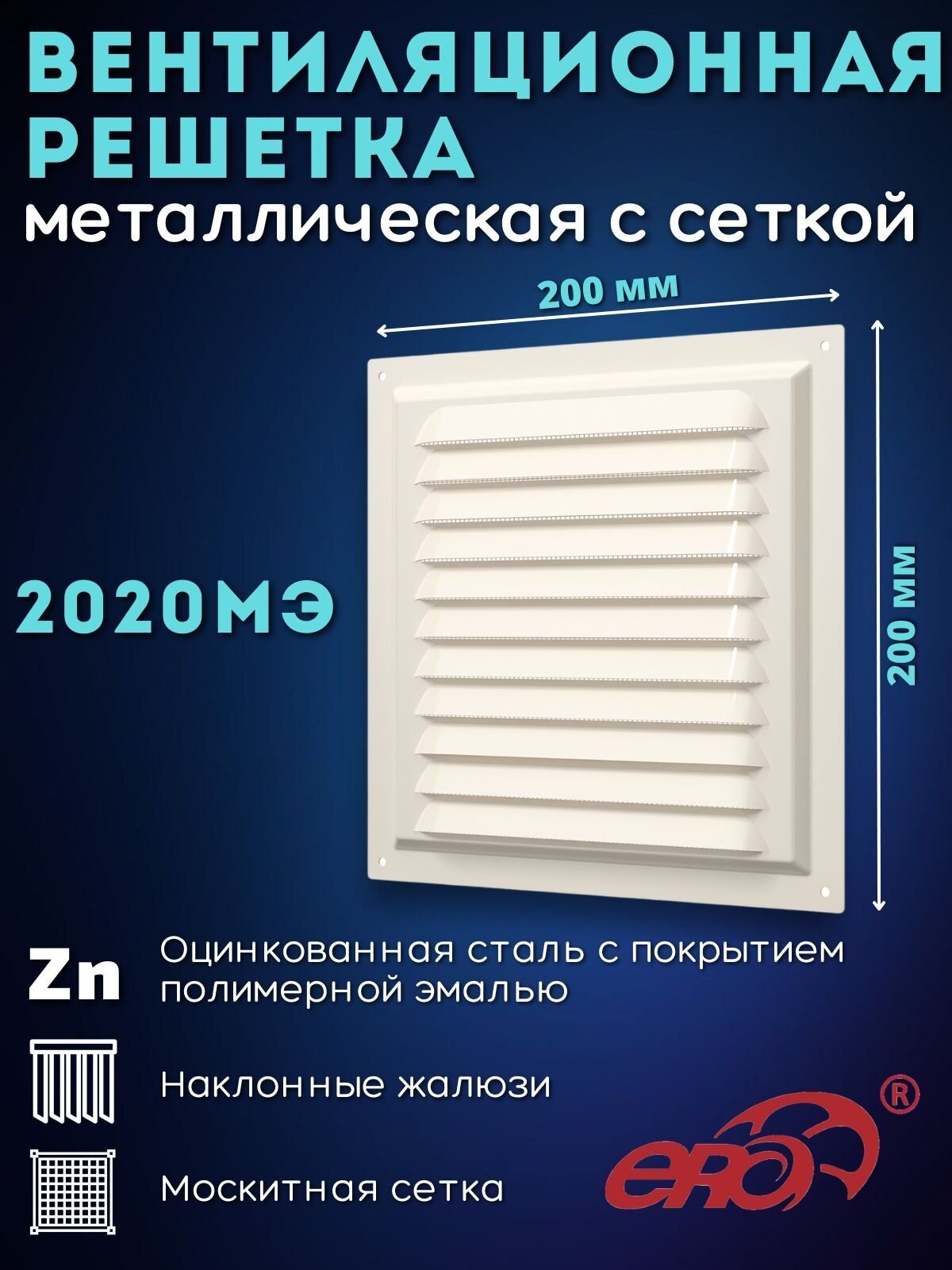 Решетка вентиляционная ERA 2020 МЭ, металлическая, с сеткой, 200x200 мм
