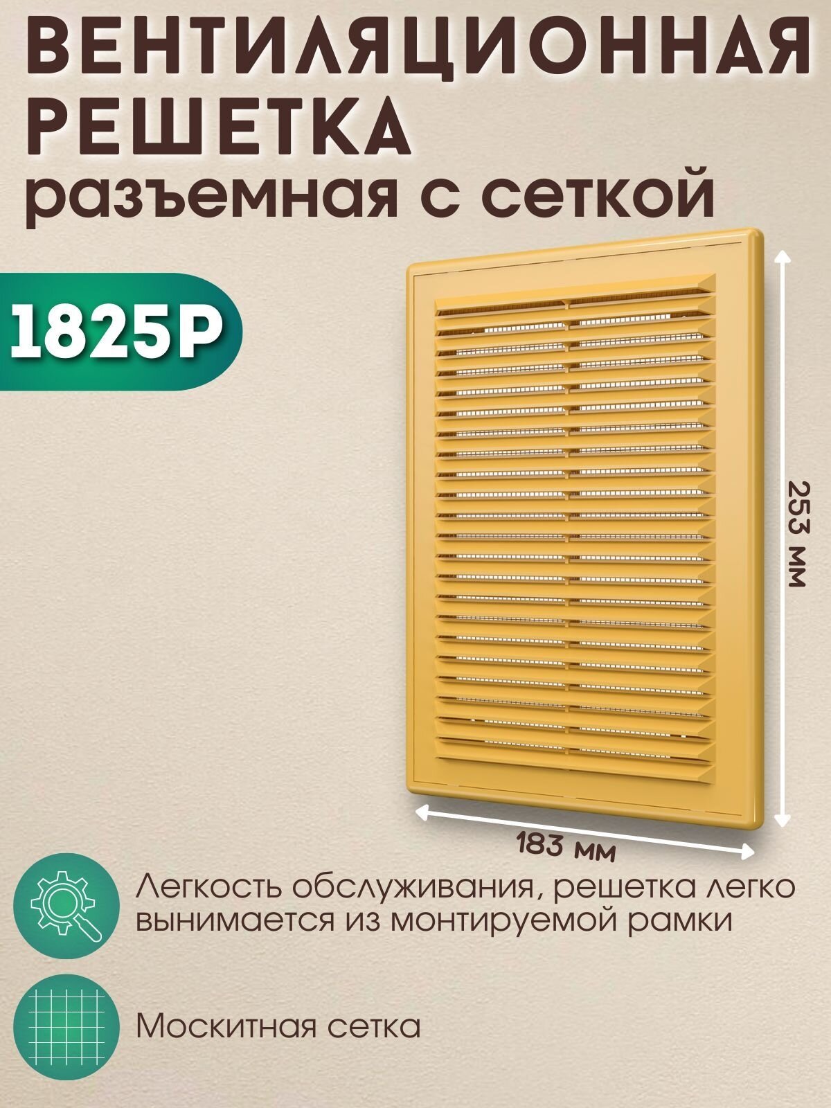 СохранитьРешетка вентиляционная 180х250 разъемная с москитной сеткой 1825Р бежевая интересное: