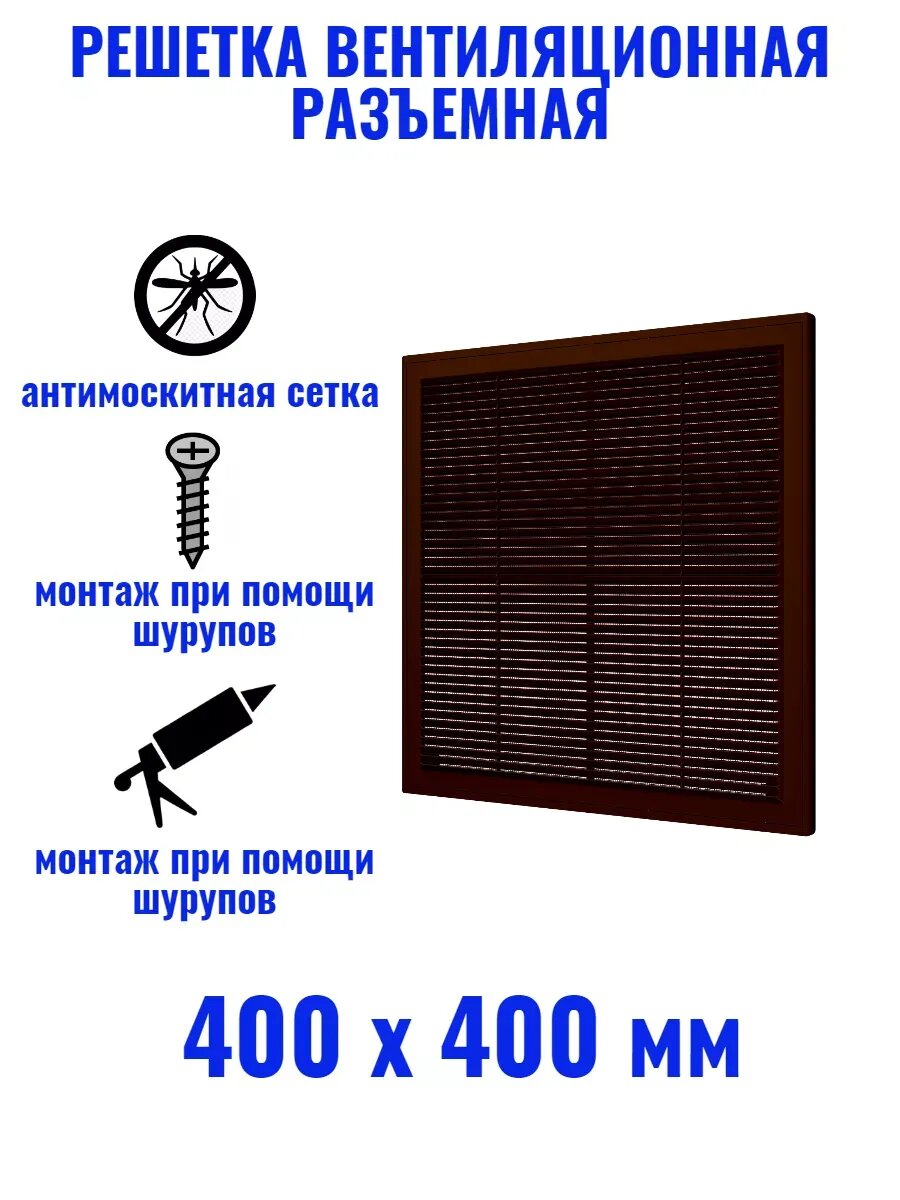 СохранитьВентиляционная решетка 400х400 мм разъемная с москитной сеткой 4040Р кор коричневая интересное: