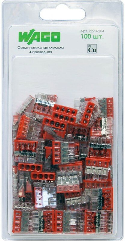 WAGO Соединительная клемма WAGO 4-х проводная (2273-204) 6 шт. в блистере