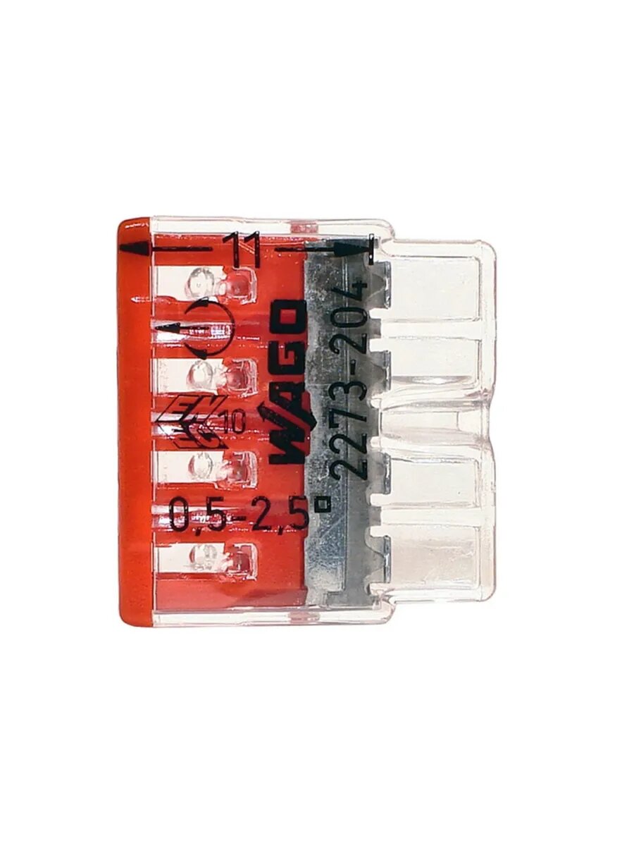 Купить Клемма 4х(0.5-2.5мм) 4-х проводн. для распред. короб. (без п) WAGO 2273-204 (1шт.)
