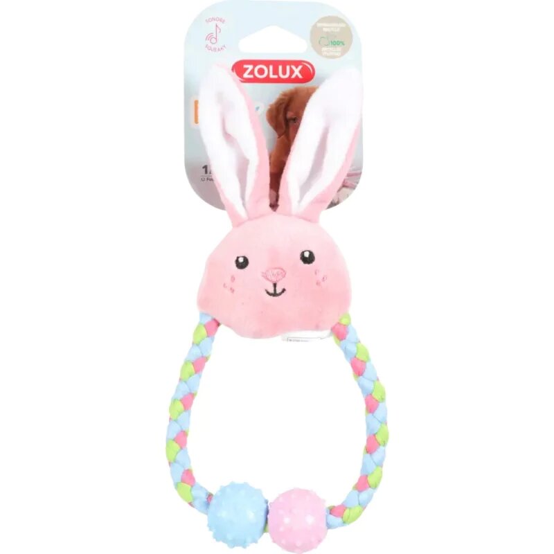 Купить Игрушка для собак кольцо-канат с пищалкой и элементами ТПР плюшевая "Зайка", 22 см ZOLUX