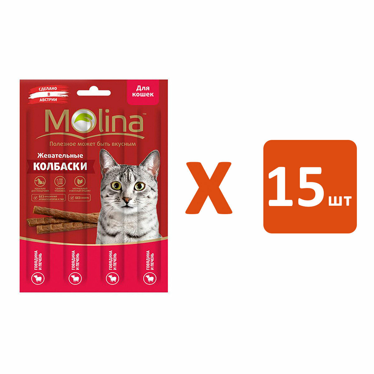 Купить Лакомство MOLINA для кошек колбаски с говядиной и печенью (20 гр х 15 шт)