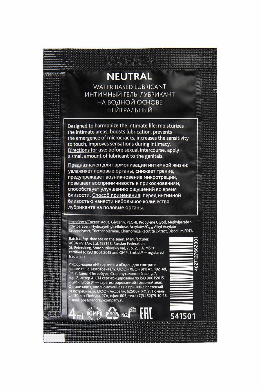 Купить Лубрикант Erotist на водной основе NEUTRAL, нейтральный, саше, 4 мл 10шт