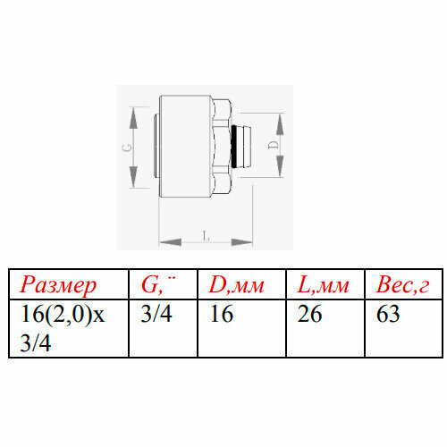 Евроконус для металлополимерной трубы VALTEC 16 (2,0) VT.4420.NVE.16