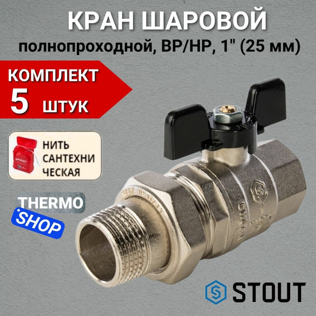 STOUT Кран шаровой полнопроходной "американка", ВР/НР, ручка бабочка 1"