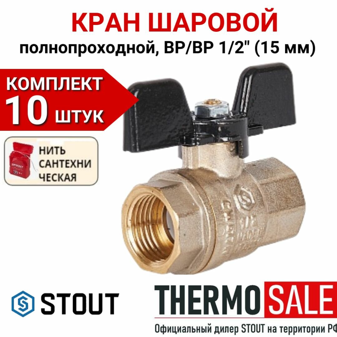 STOUT Кран шаровой полнопроходной, ВР/ВР ручка бабочка 1