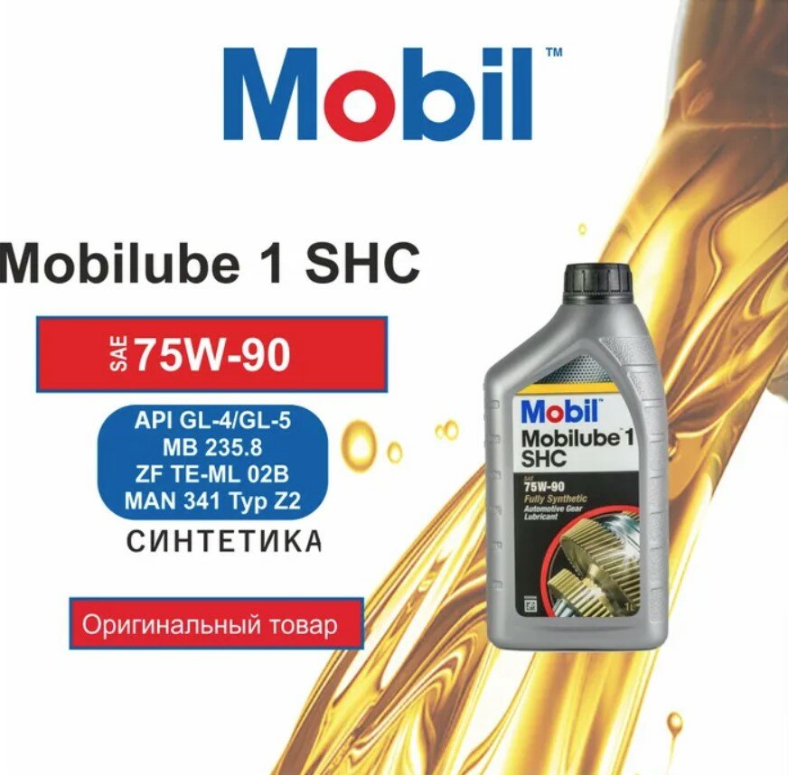 Масло трансмиссионное MOBIL Mobilube 1 SHC, 75W-90, 1 л, 1 шт.