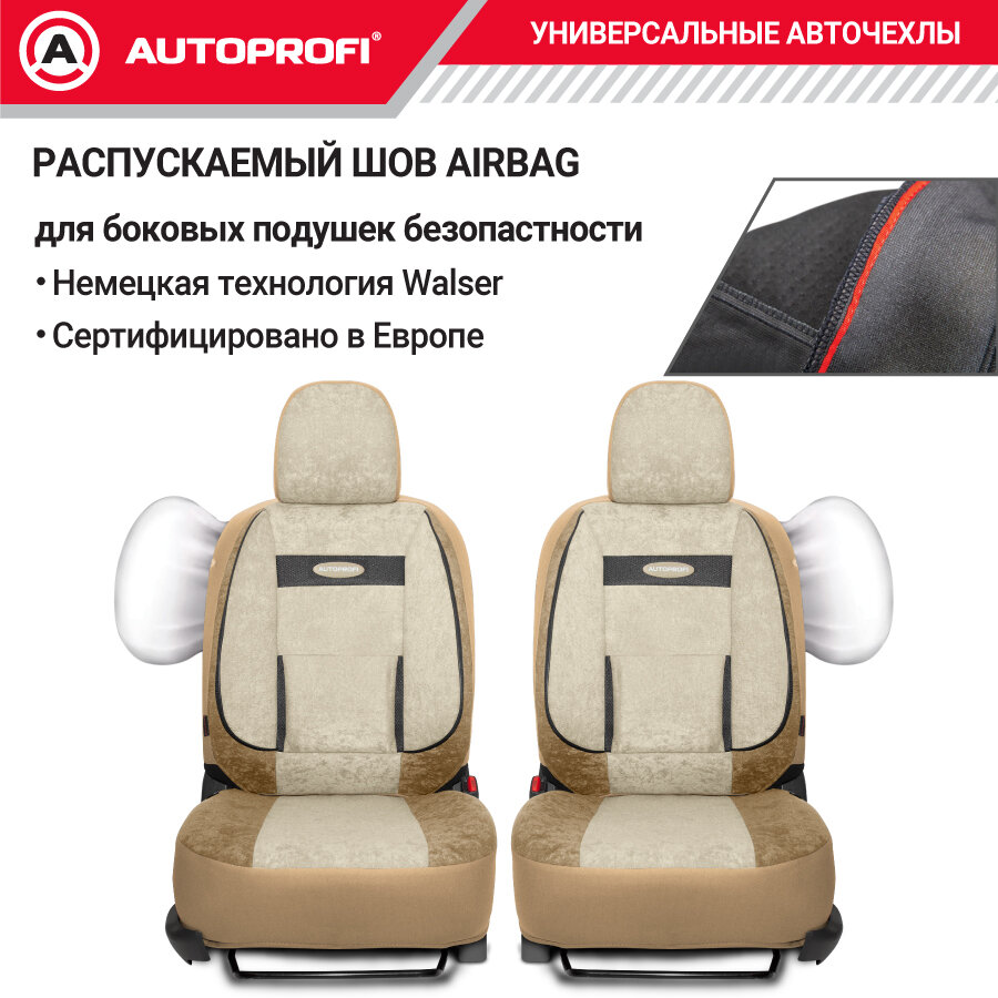Авточехлы универcальные AUTOPROFI COMFORT, COM-1105 D.BE/L.BE (M), велюр, набор из 11 предметов, цвет тёмно-бежевый/светло-бежевый