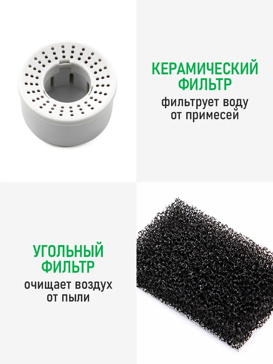 | Минусы: | Резервуар с водой не крепится к нижней части корпуса, если случайно задеть - он скорее всего не переживёт падения, пластик всё-таки. Так что скорее всего не совместим с активными детьми и животными. |