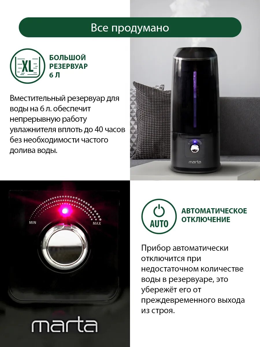 Увлажнитель воздуха ультразвуковой, верхний залив 6 л интересное: