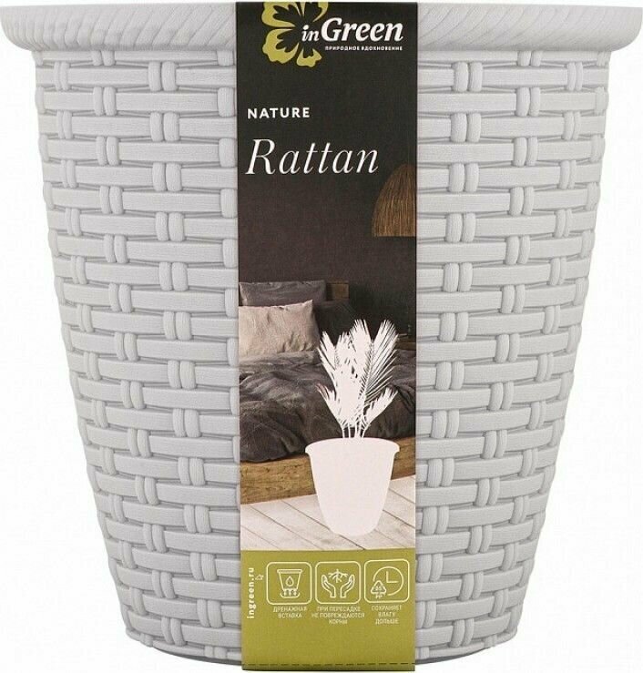 Кашпо INGREEN Rattan 30л с внутренним горшком 16 л, Сливочный (ING50030АЙВ)