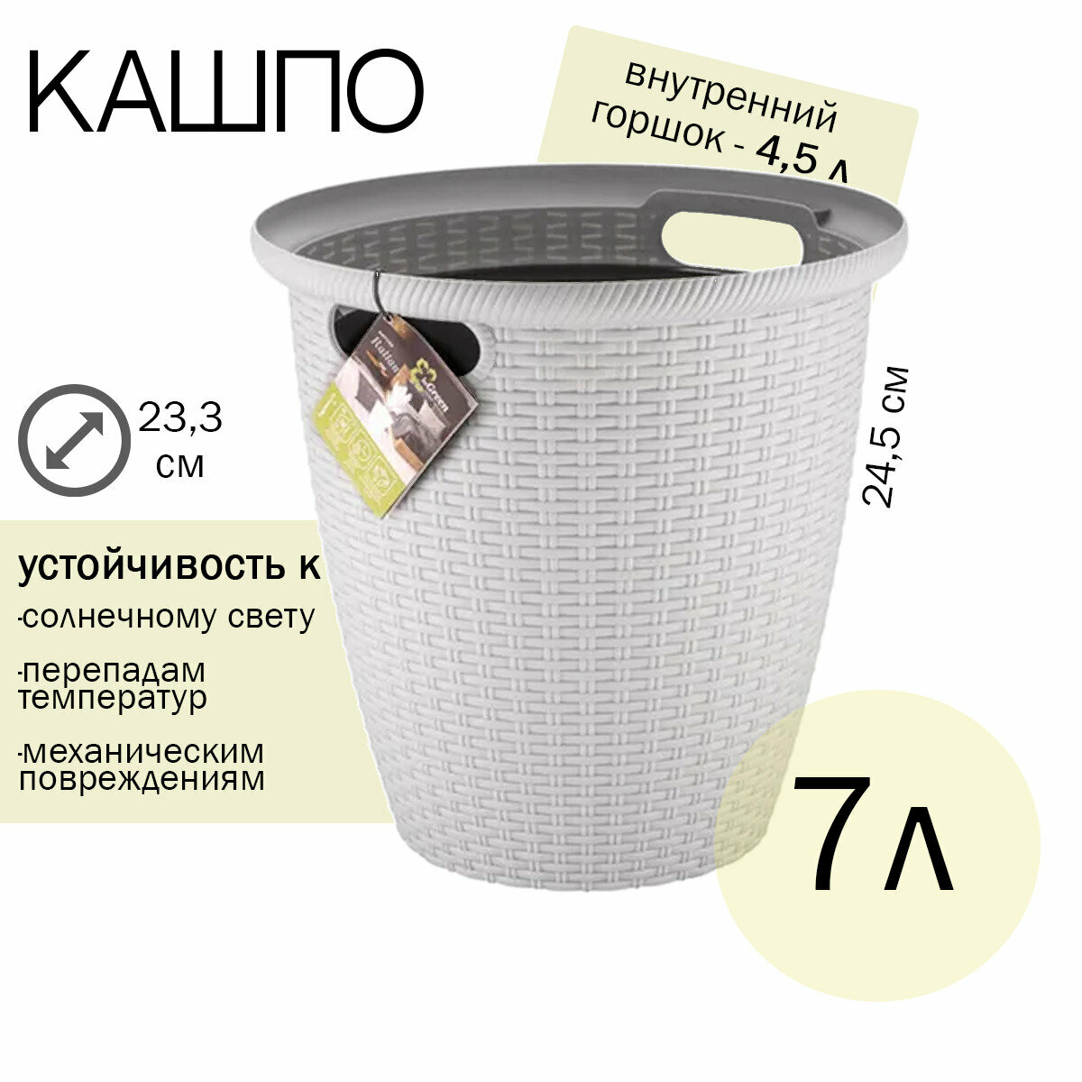Кашпо напольное Ротанг D=380мм (30л) айвори/сливочный, внутренний горшок=16л, ING50030АЙВ InGreen, 1 шт.