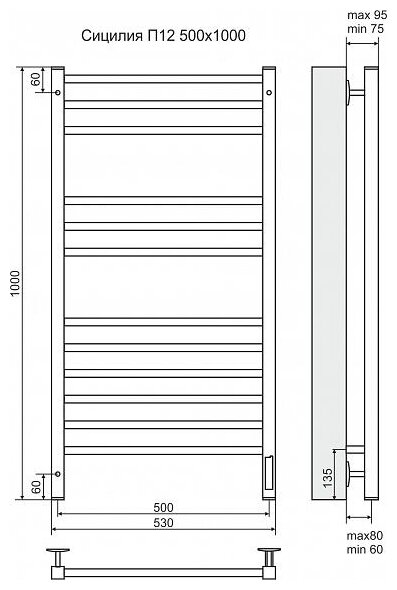 З Полотенцесуш Сицилия элек 30х30/18 П12 6-3-3, 500мм*1000мм, Terminus, арт СицилияЭП12-5001000