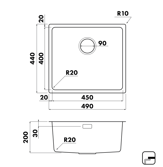 Мойка для кухни из нержавеющей стали SEAMAN / симен Eco Roma SMR-4944A прямоугольная матовая полировка 49х44см глубина 20см