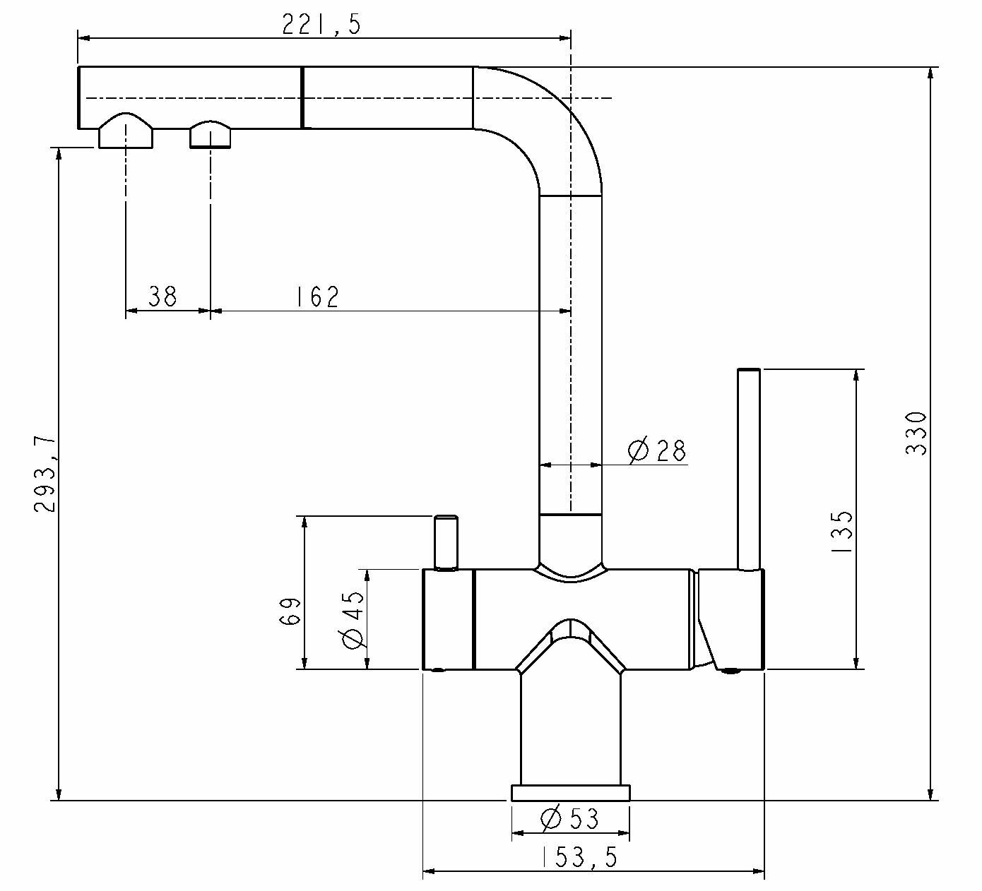 Из минусов: рычаги работают по разному принципу. Уже пару раз путалась. Фильтр только вперед(открыть)-назад (закрыть), а рычаг для водопровода вперёд (горячая)-назад (холодная), вбок -напор. И про монтаже обратите внимание на расположение отверстий. Они не маркированы. Отверстие для фильтра ровно под его краном. |