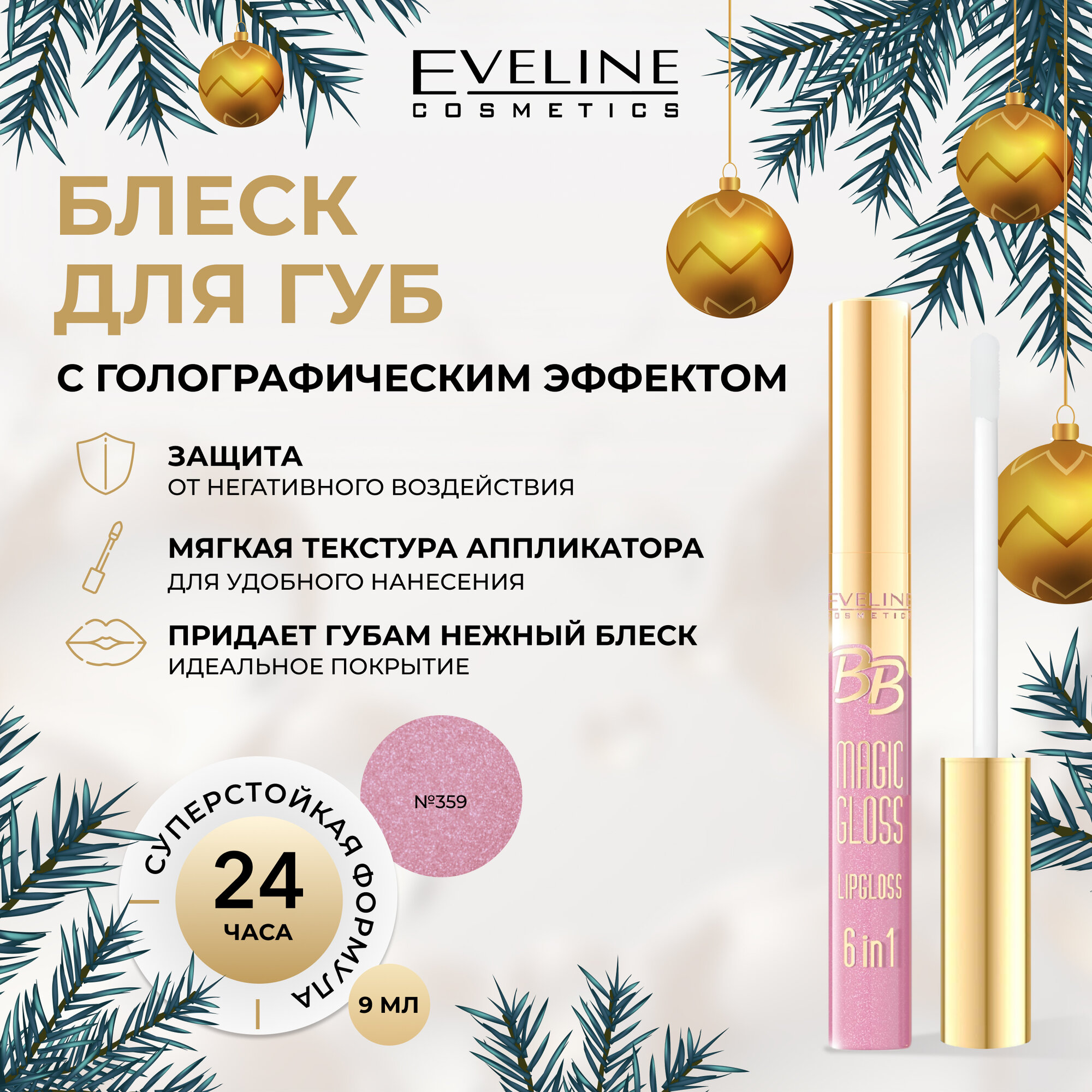 Eveline Cosmetics / Эвелин Косметикс Блеск для губ BB Magic Gloss Lipgloss 6 в 1, тон 359 светло-розовый, 9мл / декоративная косметика
