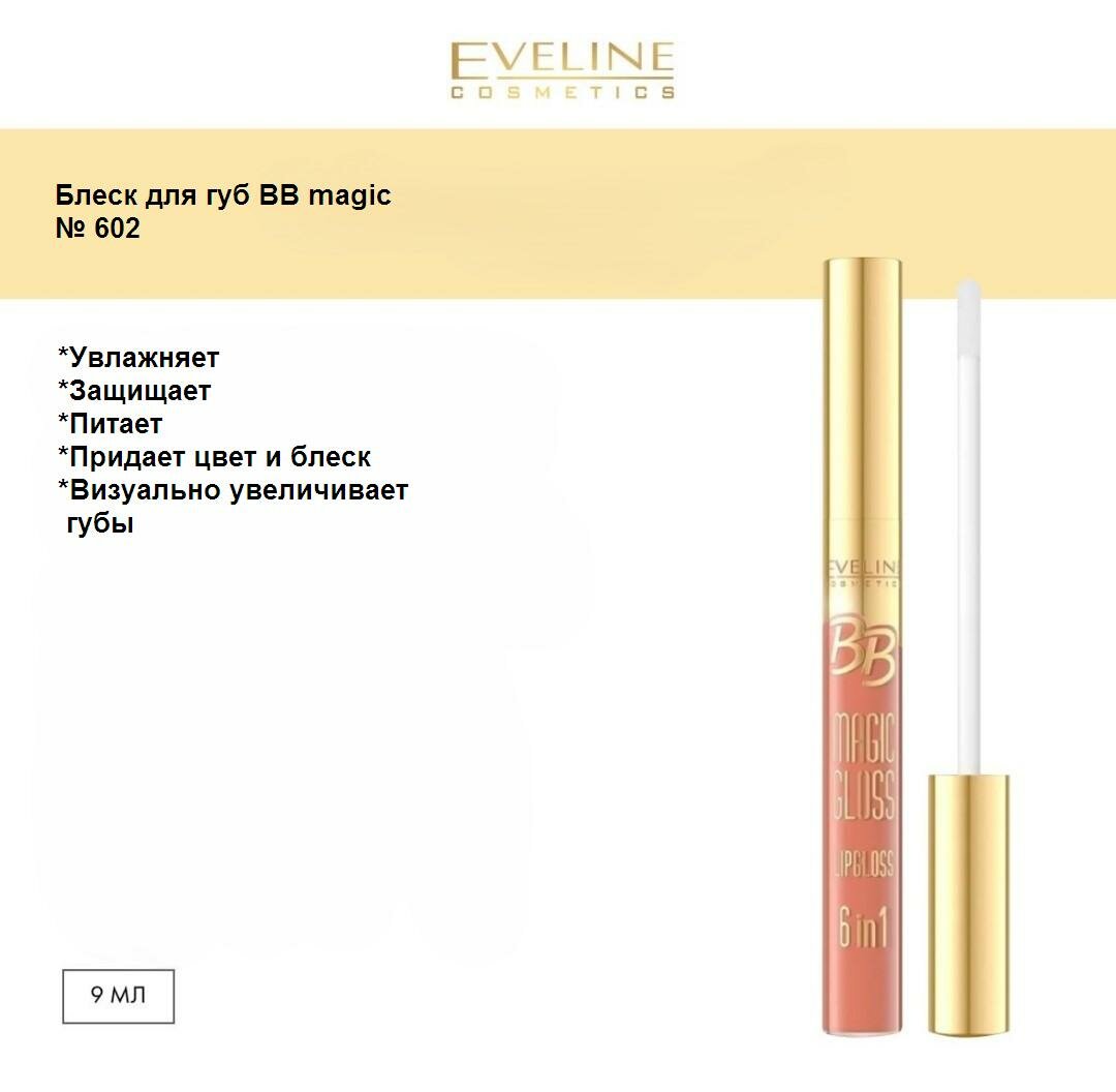 Eveline Cosmetics Блеск для губ Bb Magic Gloss, № 602, 9 мл.
