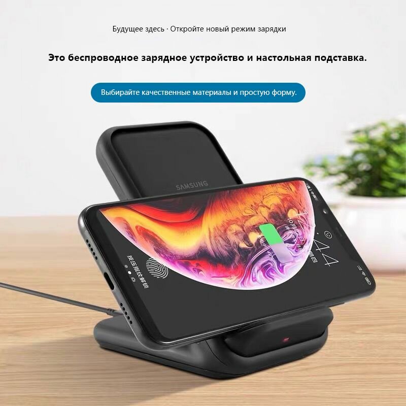 | Плюсы: | Заряжает мой Samsung S10+, и супруги Samsung S10e, и заряжает в быстром режиме. Наклон удобен, служит как подставка для гаджета, можно при зарядке пользоваться (ну, кроме звонков без гарнитуры).