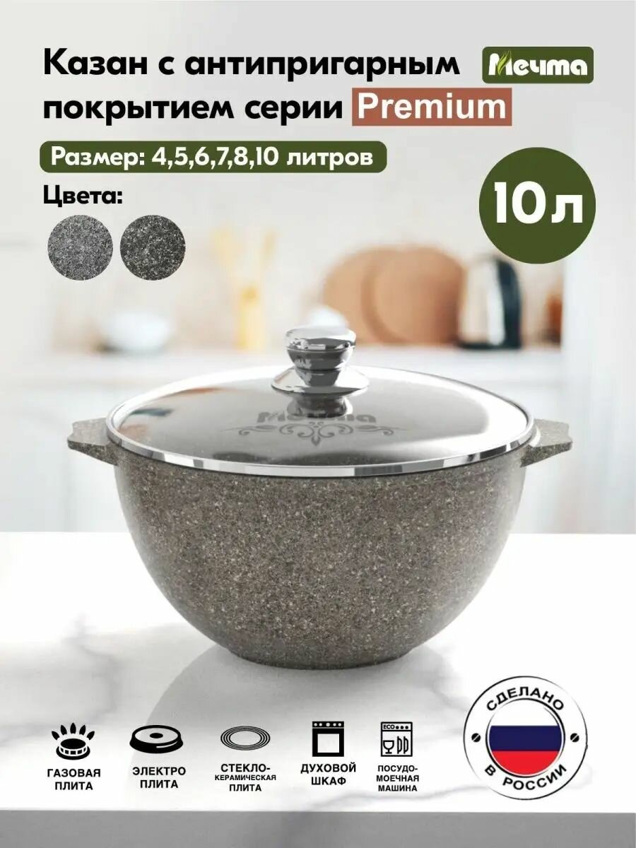 Казан для плова Мечта 8 л Гранит с антипригарным покрытием с крышкой, НЕ индукционный
