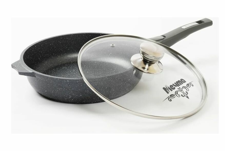 мечта с26802 гранит black 26см с несъемной ручкой и стекл. крышкой сковорода