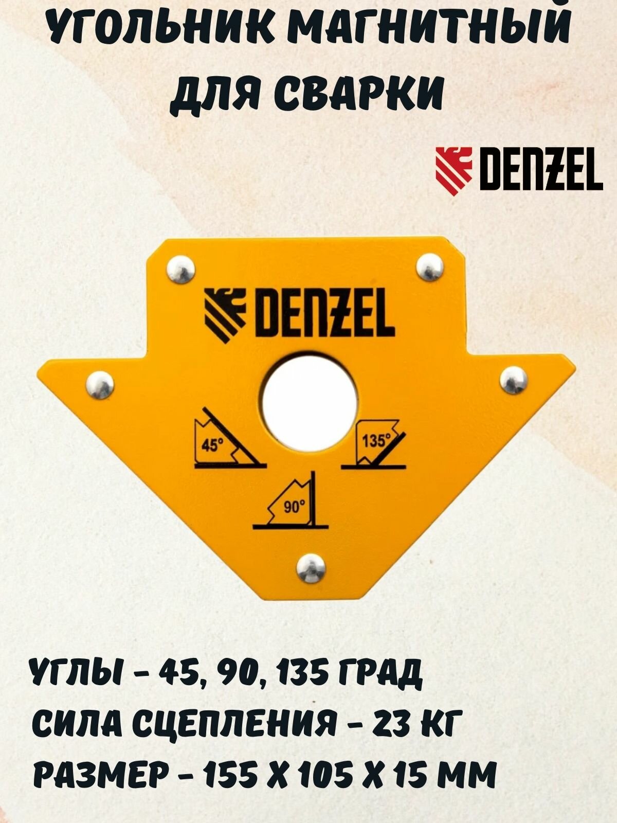 Купить Магнитный угольник Denzel 97553, для сварочных работ, усилие 23 кг, 45, 90, 135°