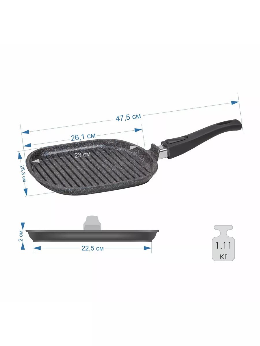 Сковорода-гриль Мечта "Гранит star" низкая квадратная, съемная ручка 25см (065803)