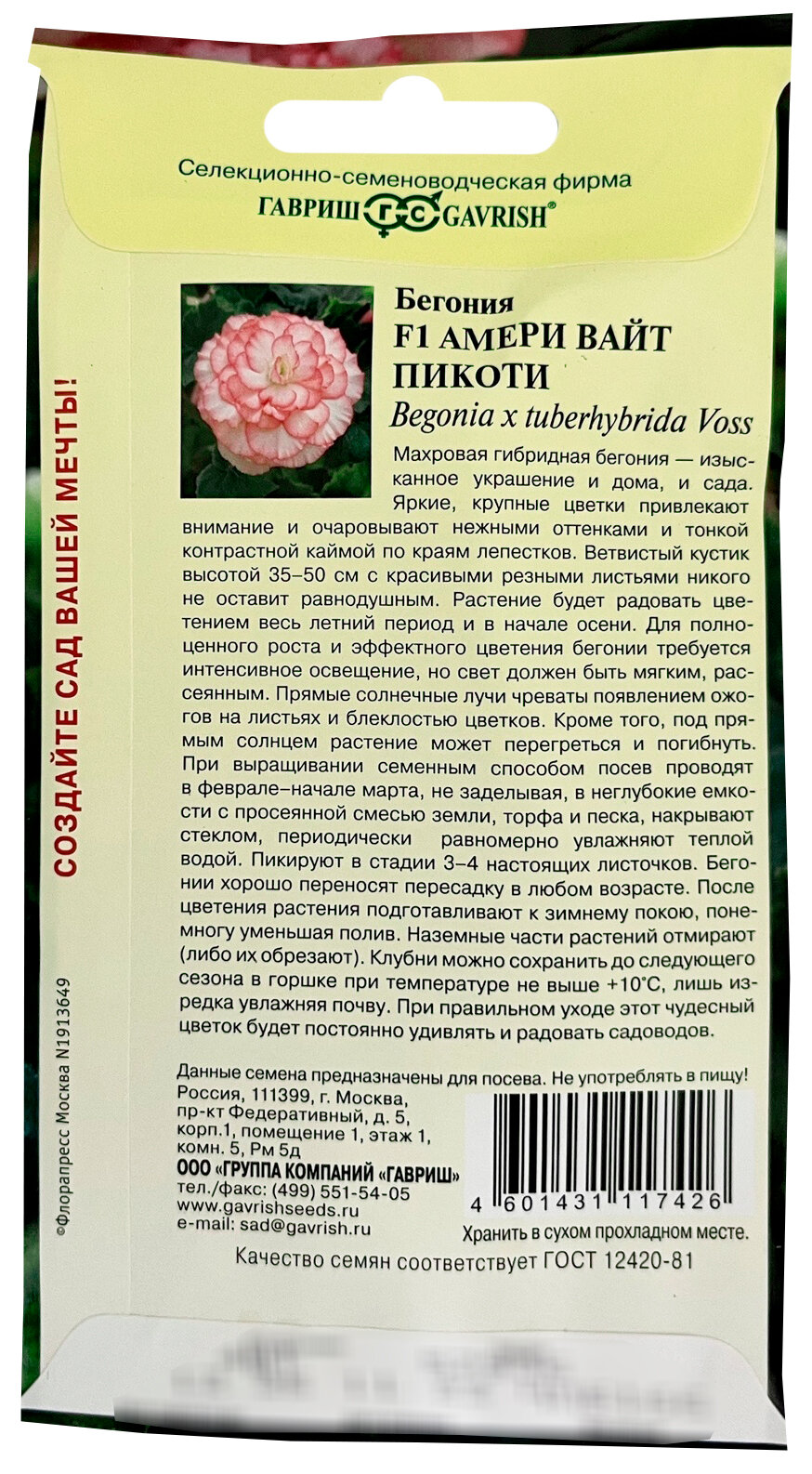Семена Бегония "Гавриш" Триумф белый F1 5шт