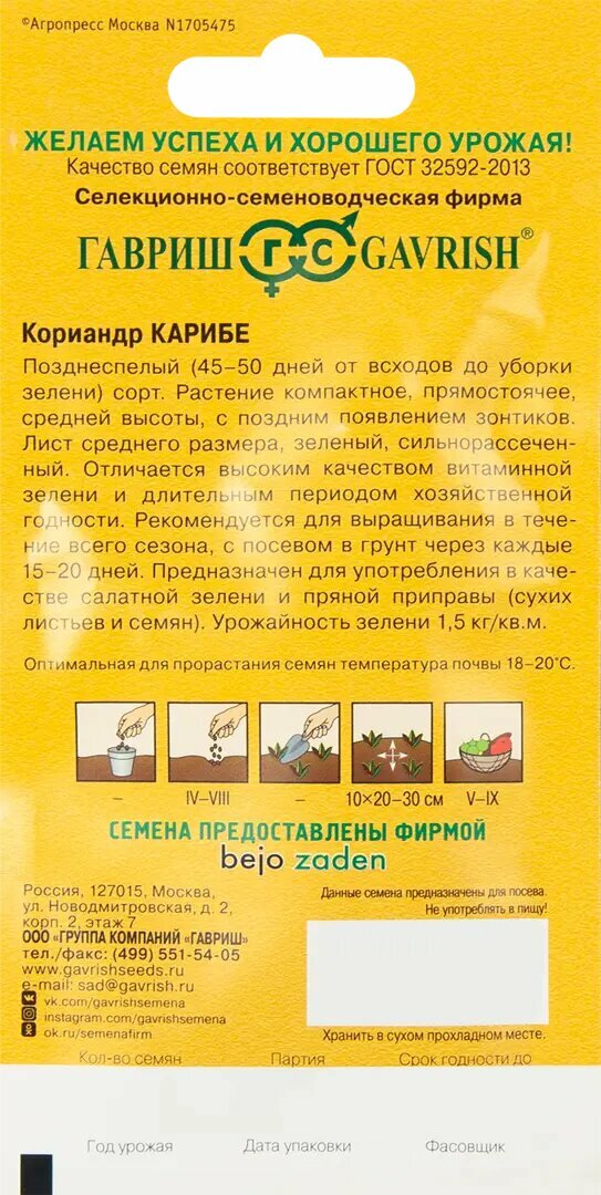 Купить Гавриш Кориандр Карибе 1 г (Голландия) Н19